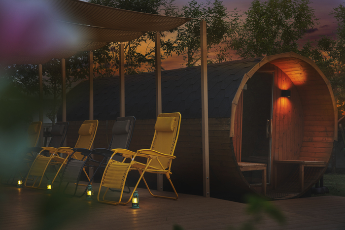 아침엔 해협이 내려다보이는 풀에서 수중 스트레칭을 진행하고,전용 사우나에서 열기와 바깥 공기를 번갈아 즐기며 휴식이 가능하다.