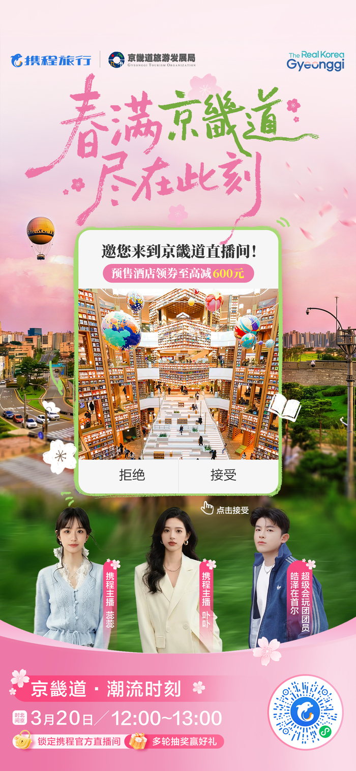 중국인 쇼호스트와 여행 인플루언서가 경기도에서 즐길 수 있는 트렌디 문화,놀이시설,K-푸드,힐링 등을 홍보하고 도내 숙박시설,관광지 입장권,일일투어,그룹투어 등 100여종의 관광체험상품 판매 및 할인 이벤트 등도 소개한다.