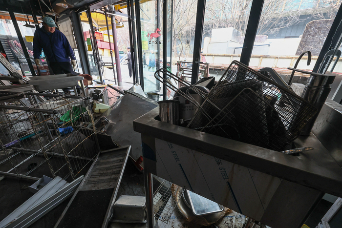 서울 시내 한 카페 겸 술집으로 운영했던 가게가 폐업으로 철거되고 있다. [뉴스1] 최근 5년간 기보의 대위변제 순증액은 꾸준히 증가하는 추세다. 2021년 4904억원에서 2022년 4959억원으로 늘었고,2023년 9567억원으로 급증했다. 이후 2024년 1조1568억원,지난해 1조4258억원으로 확대됐다.