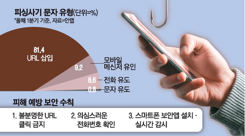 안내 메시지에 URL 미포함배너링크·앱푸시도 제공안해안랩 "피싱공격 10건 중 8건링크 첨부해 클릭 유도 방식"