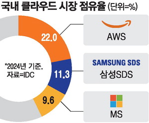 삼성SDS, MS 제치고 2위 등극국내 클라우드 판도 변화AWS, 22% 점유율로 1위