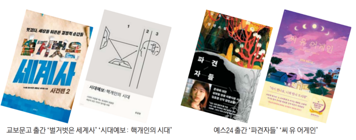 일부 눈에 띄는 성과도 거뒀다. 지난 2022년 1월부터 이달까지 총 7권을 출간한 ‘벌거벗은 세계사’(tvN) 시리즈는 누적 판매 20만부를 돌파했다. tvN 교양 프로그램 ‘벌거벗은 세계사’를 권력자편,사건편,인물편,경제편 등으로 나눠 정리한 책이다. 지난해 9월 출간된 ‘시대예보: 핵개인의 시대’(송길영)도 최근 누적 판매량 11만부를 넘어섰다. 2013년부터 지난해까지 총 11회의 공모전을 개최한 ‘교보문고 스토리대상’은 종이책 96종과 e북 114종,영화·드라마 48건,웹툰 37건,뮤지컬·연극 등 19건 등 300여 건의 IP 발굴로 이어지기도 했다. 지난해 KBS 2TV에서 방영된 드라마 ‘순정복서’도 교보문고 스토리대상 수상작으로 북다에서 출간된 동명의 소설이 원작이다.