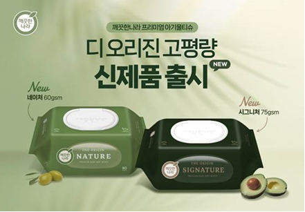 깨끗한나라 ‘디 오리진 시그니처·네이처’ 생활 혁신 솔루션 기업 깨끗한나라(대표 최현수·김민환)는 신제품 ‘깨끗한나라 베이비 케어 디 오리진 시그니처·네이처’를 출시하며 아기 물티슈 라인업 확대에 나섰다고 24일 밝혔다.