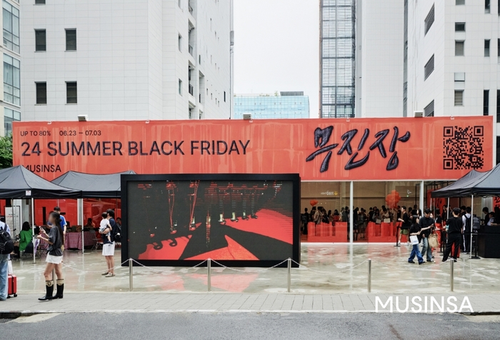 무신사 ‘무진장 여름 블프’ 성수 팝업 스토어 외부 전경.[사진제공=무신사] 무신사는 자사가 진행하는 ‘2024 무진장 여름 블랙프라이데이’(이하 무진장 여름 블프) 행사가 오픈 4시간 만에 100억원의 누적 판매액을 달성했다고 24일 밝혔다.