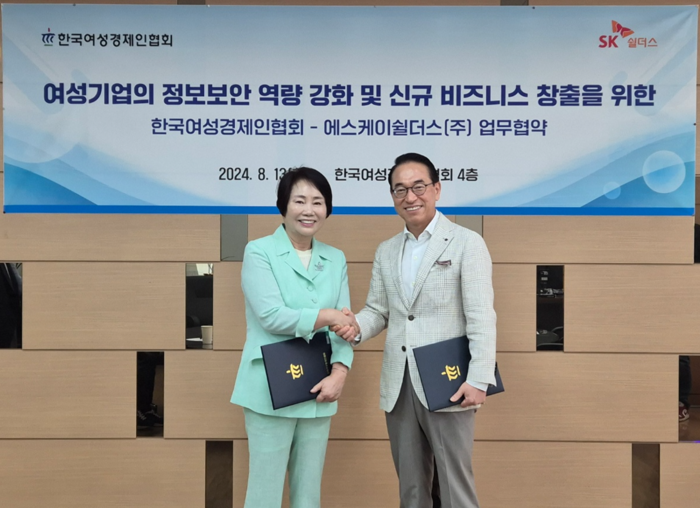 한국여성경제인협회(회장 이정한)는 여성기업 정보보안 역량강화를 위해 SK쉴더스(부회장 홍원표)와 업무협약을 체결했다고 14일 밝혔다.