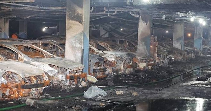 지난 1일 인천 서구 청라동 아파트 지하 주차장에서 전기차 배터리 화재가 발생했다. 사진은 피해 차량들이 전소된 모습. [사진 = 연합뉴스] 전기차 배터리발 화재로 중국산 배터리에 대한 공포가 확산하고 있다. 이에 정부가 전기차 제조사에 배터리 정보를 공개할 것을 권고하면서 글로벌 시장에서 기술력을 인정받은 K-배터리에 대한 선호도가 높아질 전망이다.