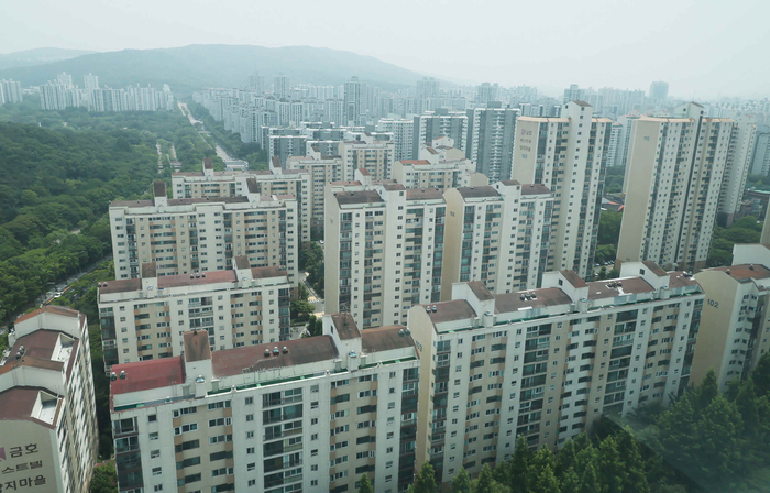 경기도 부천시 내 중동 신도시의 한 아파트 단지 전경. [매경DB] 현재 영구임대주택은 분당 4개 단지(5800가구),일산 3개 단지(2300가구),중동 2개 단지(1900가구),산본 3개 단지(3400가구),평촌 1개 단지(900가구) 규모다. 도심에 있어 위치가 좋고 밀도가 낮아 재건축을 통해 신규 주택을 대거 확보할 수 있다.