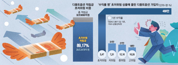 14일 금융감독원에 따르면 지난 2분기말 디폴트옵션 총 적립금 32조9095억원 가운데 89.17%인 29조3478억원이 초저위험 상품에 몰렸다.