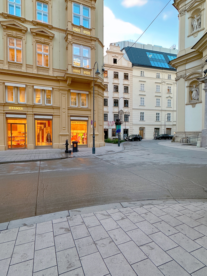 호텔 바로 옆에 위치한 에르메스 매장 / 사진=권효정 기자 로즈우드 비엔나는 ‘공간’의 가치를 극대화한 럭셔리 호텔
