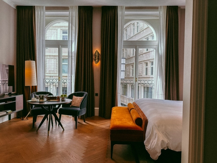 객실 내부 / 사진=권효정 기자 투숙객은 모차르트가 영감을 얻었던 바로 그 창문에서 광장을 조망할 수 있다. 객실 곳곳 숨겨진 예술 작품은 마치 모차르트 선율처럼 감성을 자극한다.