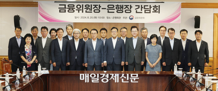 20일 오전 서울 중구 은행연합회에 김병환 금융위원장과 각 시중은행장들이 금융위원회-은행권 간담회‘ 에 참석하고 있다. 2024.8.20[이충우기자]