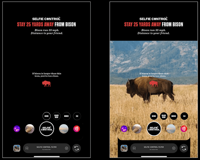 잭슨홀 여행관광위원회는 “육안으로는 동물이 얼마나 떨어져 있는지 모른다”며 “그렇기 때문에 적절한 거리를 유지하며 사진을 찍을 수 있는 인스타그램 필터를 만들었다”고 전했다.