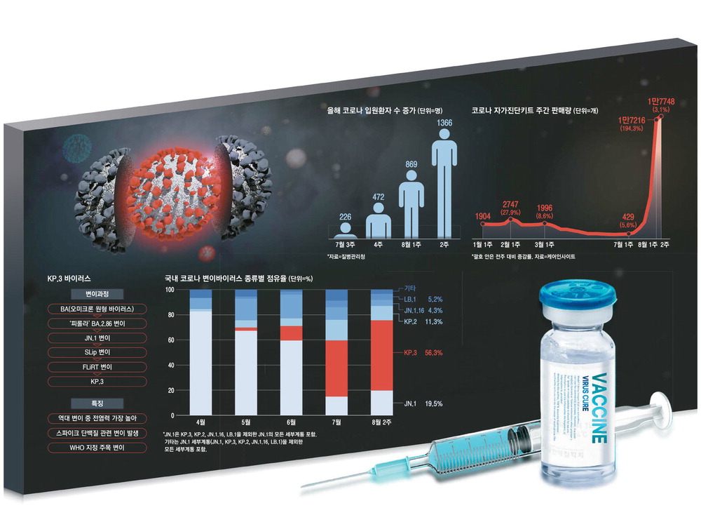코로나19 재유행은 변이 바이러스인 KP.3가 주도하고 있다. KP.3는 역대 등장했던 변이 바이러스 중 전염성이 가장 높은 것으로 분석된다.
