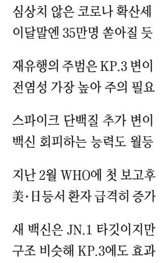 더 무서운 녀석 번진다 코로나 바이러스 KP.3