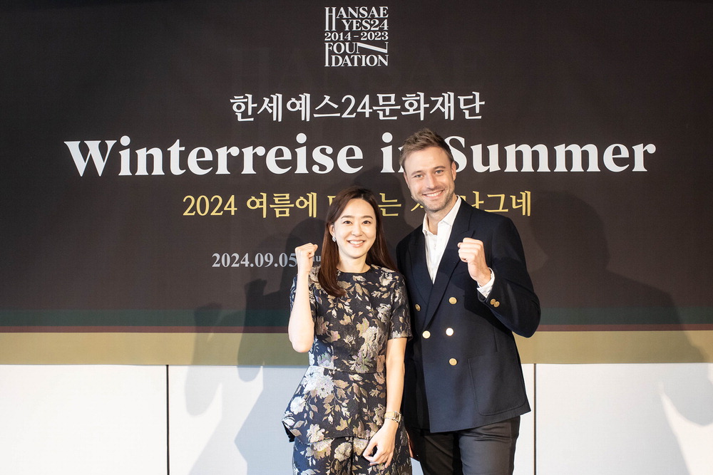 백수미 한세예스24문화재단 이사장(왼쪽)과 바리톤 벤야민 아플. 한세예스24문화재단