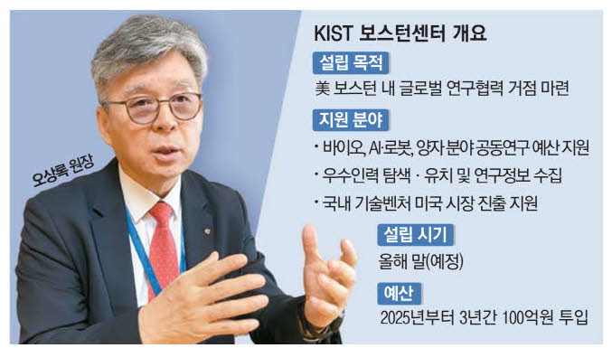 오상록 KIST 원장은 최근 매일경제와의 인터뷰에서 이 같은 내용의 K-BB 프로그램 추진 계획을 공개했다. 미국에 센터 규모의 출연연 연구협력 거점이 생기는 것은 이번이 처음이다. 이미 내년도 예산도 확보했다. 오 원장은 "센터는 세계 최고 수준의 연구자와 기관이 밀집한 보스턴과 KIST의 협력관계를 강화하는 가교 역할을 수행할 것"이라고 밝혔다.