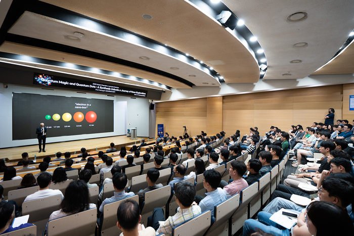 바웬디 교수는 이날 삼성디스플레이 기흥캠퍼스 강연장에서 이종혁 대형사업부장(부사장)을 비롯해 삼성디스플레이 임직원 400명과 세미나를 열고 ‘양자 마법과 양자점 기술: 나노 세계로의 여정을 여는 합성법’을 주제로 강연을 펼쳤다. 그는 “퀀텀닷이 삼성의 기술력과 만나 디스플레이 분야에서 빠르게 발전하고 있다”며 “미래에는 바이오이미징,광센서 등 다양한 응용 기술로 확대될 것”이라고 강조했다.