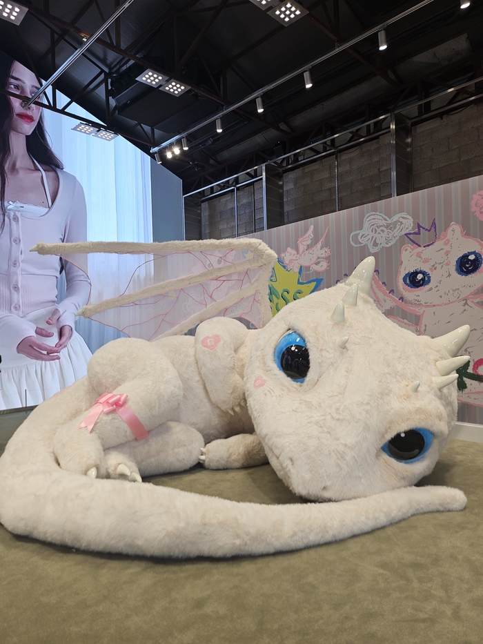 13일 무신사 스토어 성수@대림창고에 놓인 포토존의 대형 캐릭터 오브제. [김효혜 기자] 무신사 관계자는 “K패션을 제대로 보여주는 공간으로 만들기 위해 대부분을 국내 브랜드로 구성했다”면서 “외국인들이 이곳을 찾으면 인기 K패션 브랜드를 다 만날 수 있”다고 설명했다.