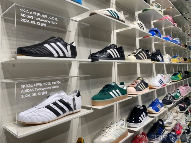 13일 공식 개점한 무신사 스토어 성수@대림창고 앞에 고객들이 입장을 기다리며 줄을 서고 있다. [김효혜 기자] 이날 하루 한정 발매하는 스니커즈 ‘아디다스 태권도’ 제품은 오전 내 전부 동이 났다. 아디다스 태권도는 아디다스가 태권도에서 영감을 얻어 내놓은 제품으로,미니멀하면서도 스포티한 디자인으로 발매 직후부터 품귀 현상을 빚은 인기 제품이다.