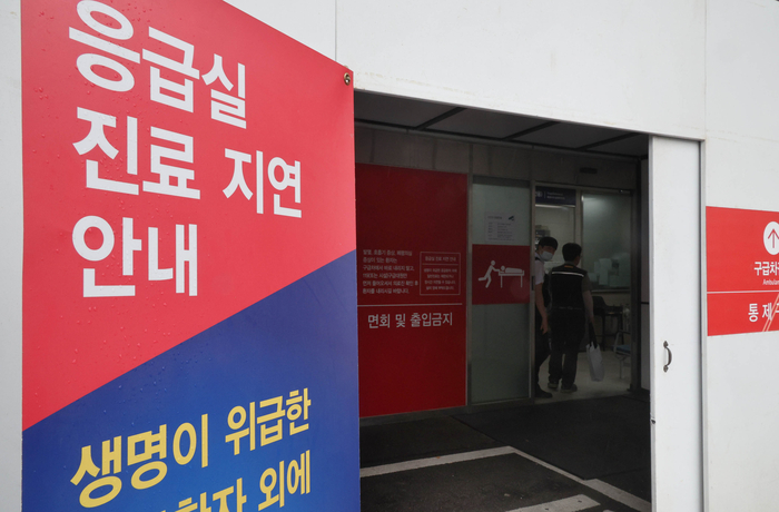 12일 서울의 대학병원 응급의료센터에 진료 지연 안내문이 붙어 있다.정부가 추석 연휴에 응급실 환자가 몰리는 상황에 대비해 11일부터 25일까지 2주간 ‘추석 명절 비상 응급 대응 주간’을 운영한다. 2024.09.11 [이충우 기자] 복지부는 중증응급환자의 원활한 이송을 위해 이날 지역응급의료센터 136곳 중 14개소를 거점 센터로 지정했다. 이대서울병원과 노원을지대병원,인제대부산백병원,가톨릭대인천성모병원,동강의료재단동강병원,한양대구리병원,인제대일산백병원,부천세종병원,인화재단한국병원,아산충무병원,대자인병원,동국대경주병원,창원한마음병원,제주대병원 등이다. 거점 센터는 권역응급의료센터 44곳과 더불어 케이타스 1·2 환자들을 적극 수용해 치료할 예정이다.