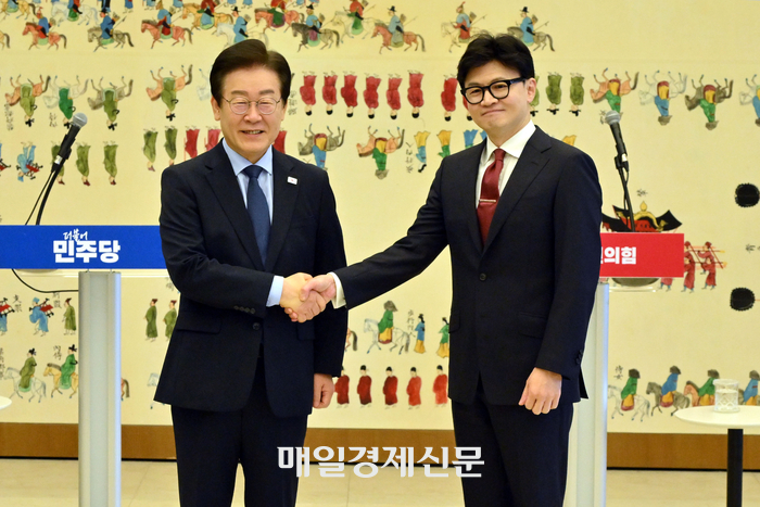 한동훈 국민의힘 대표와 이재명 더불어민주당 대표가 회담을 하고있다. 2024.9.1 [김호영기자]