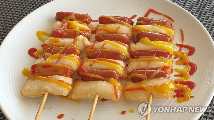 고속도로 휴게소 소떡소떡.[연합뉴스] 한국도로공사가 관리하는 고속도로 휴게소에서 가장 많이 판매되는 호두과자(호두),우동(우동면)이 모두 수입산으로 나타났다.