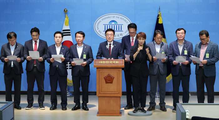국민의힘 사무총장인 서범수 의원이 20일 오전 서울 여의도 국회 소통관에서 고려아연에 대한 사모펀드의 적대적 인수·합병(M&A) 시도에 대한 우려와 반대 입장을 밝히고 있다<연합뉴스>
