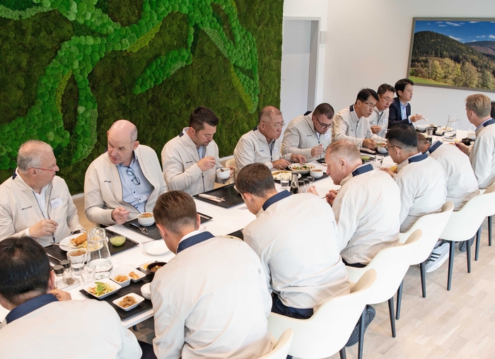 정의선 현대자동차그룹 회장이 19일(현지시각) 현대자동차 체코공장(HMMC) 및 유럽권역 근무 현지 임직원들과 함께 오찬을 하고 있다.<현대차그룹>