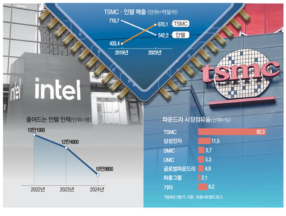 인텔 '우물안'서 원가절감만 … TSMC는 기술CEO가 37년 지휘