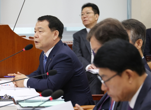 17일 국회에서 열린 환경노동위원회의 환경부 산하기관에 대한 국정감사에서 윤석대 한국수자원공사 사장이 질의에 답하고 있다. [연합뉴스] 국회 환경노동위원회(환노위)가 수자원공사 등을 대상으로 실시한 국정감사에서 정부가 추진하는 기후대응댐과 관련해 갑론을박이 이어졌다. 수자원공사는 댐이 홍수와 가뭄을 대비하는 데 효과적이라며 댐 건설 필요성을 강조했다.