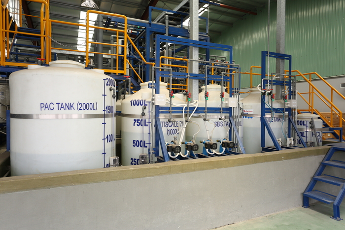 한세실업 베트남 호찌민 C&T 공장의 역삼투압방식 정수시스템 조제탱크. [사진=한세실업] 3공장에서 도입한 친환경 염색기의 경우 시운전 시 42%의 용수 절감 효과와 10%의 화학약품 절감 효과가 나타났다. 염색기의 온도도 기존 염색기 대비 더 빠르게 올라 염색 시간을 줄일 수 있어 전기 사용 및 탄소 배출 절감에도 용이하다. 기존 폐수재활용 범위도 더 확대할 예정이다.