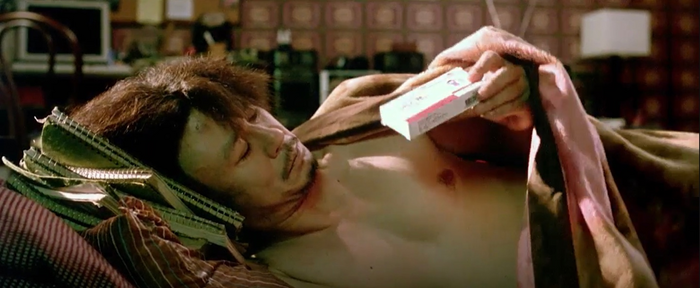 낙지를 먹다 고열로 갑자기 기절했다 깨어난 오대수(최민식 분)가 ‘한미약품’이 선명하게 인쇄된 약 포장지를 들고 당황스러워하자,그를 자기 집으로 데려온 미도(강혜정 분)가 대수롭지 않다는 듯 설명하죠. 오대수가 들고 있던 약이 한미약품의 좌제 해열제인 써스펜 좌약입니다.