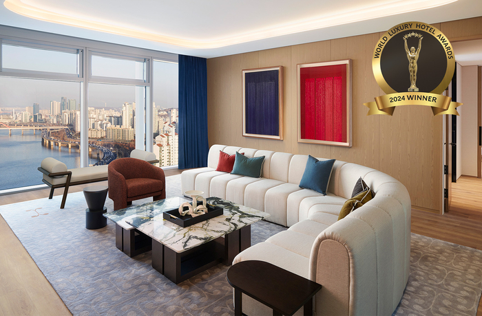 나루스위트 객실 / 사진=호텔나루서울 호텔 나루 서울 엠갤러리는 2024년 월드 럭셔리 호텔 및 레스토랑 어워즈 (World Luxury Hotel & Restaurant Awards)에서 호텔과 식당 등 총 4개 부문에서 수상했다고 29일 밝혔다.