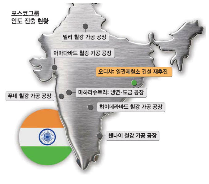 현재 포스코그룹은 인도네시아와 중국,베트남 등 해외에 일관제철소 3곳을 보유하고 있다. 인도 오디샤에 일관제철소가 지어지면 4번째가 된다.