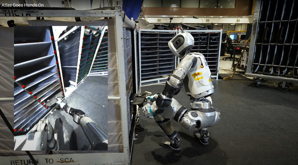 현대차그룹의 로봇 전문 계열사인 보스턴다이내믹스가 개발한 이족 보행 로봇 '올 뉴 아틀라스'가 공장에서 실제 사람처럼 자율적으로 인지·판단·제어 과정을 통해 엔진커버 부품을 이동식 보관함에 옮기고 있는 작업 영상이 3일 공개됐다. 현대차