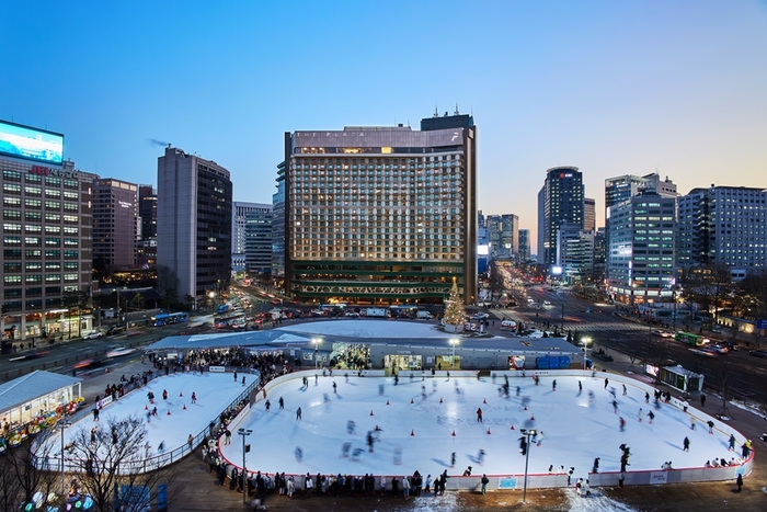 더 플라자,서울광장 스케이트장 전경 / 사진=한화호텔앤드리조트 더 플라자는 서울광장을 비롯해 덕수궁과 국립현대미술관 서울,광화문광장,명동 등 서울 주요 명소와 인접해 도심 데이트하기 좋은 위치를 자랑한다. 투숙 기간은 12월 2일부터 내년 2월 28일까지다. 오는 15일까지 예약 시 20% 할인도 받을 수 있다.