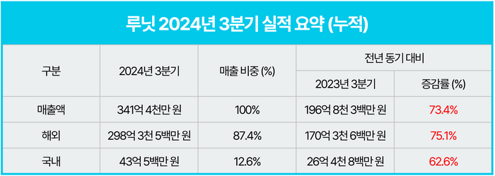2024년 3분기 누적 해외 매출은 298억3500만원으로,전체의 87.4%를 차지했다. 이는 전년동기 대비 75.1% 증가한 수치로,루닛의 핵심 제품들이 글로벌 시장에서 높은 경쟁력을 갖고 있음을 지속 보여주는 결과다.