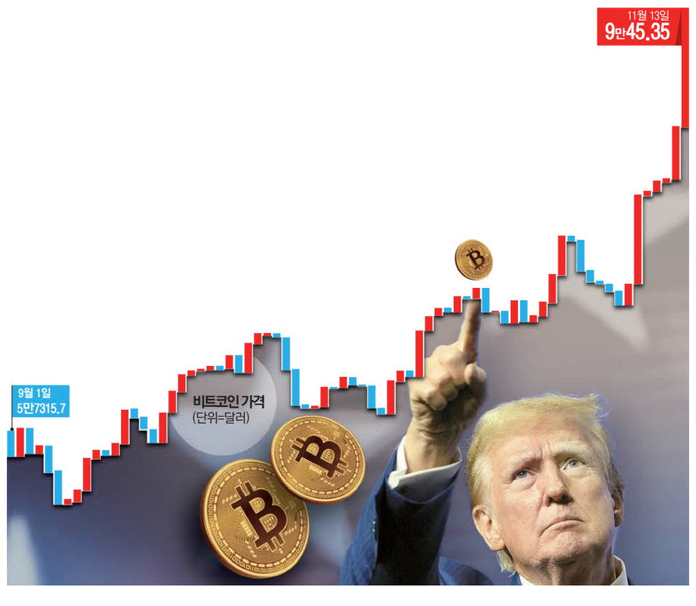 트럼프 트레이드 '위너'는 비트코인 단숨에 9만弗 터치