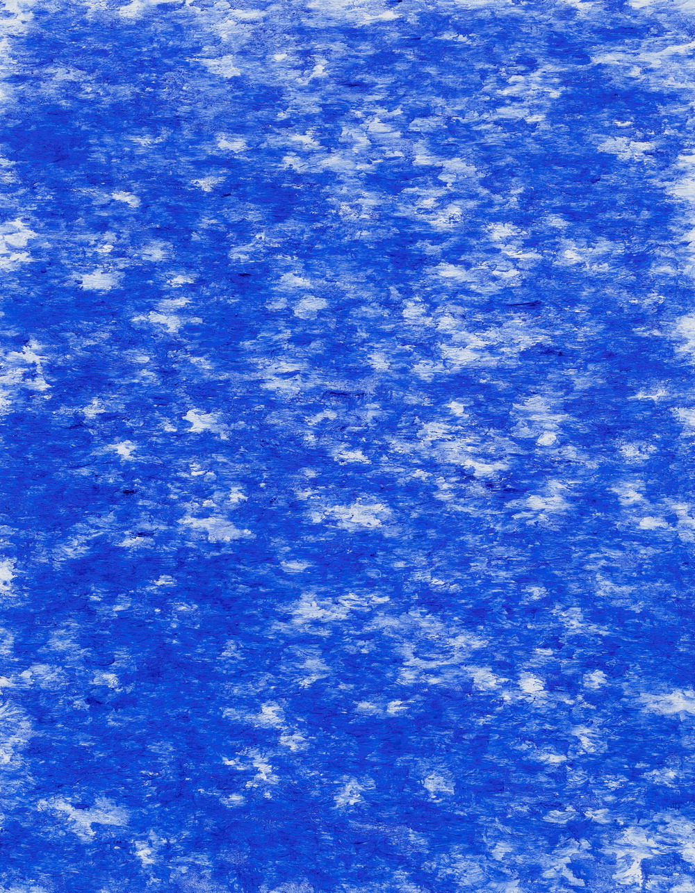 '울트라마린'(2024) 연작은 얼핏 서로 비슷해 보이지만 저마다 다른 밀도와 구성으로 각양각색의 이야기를 펼친다. 예컨대 '울트라마린 2416'은 캔버스가 촘촘하게 채워져 깊은 바다를 떠올리게 하는 반면,같은 크기의 캔버스에 그려진 '울트라마린 2421'은 이보다 더 성기게 칠해져 파도가 부서지는 얕은 바다를 연상시킨다.