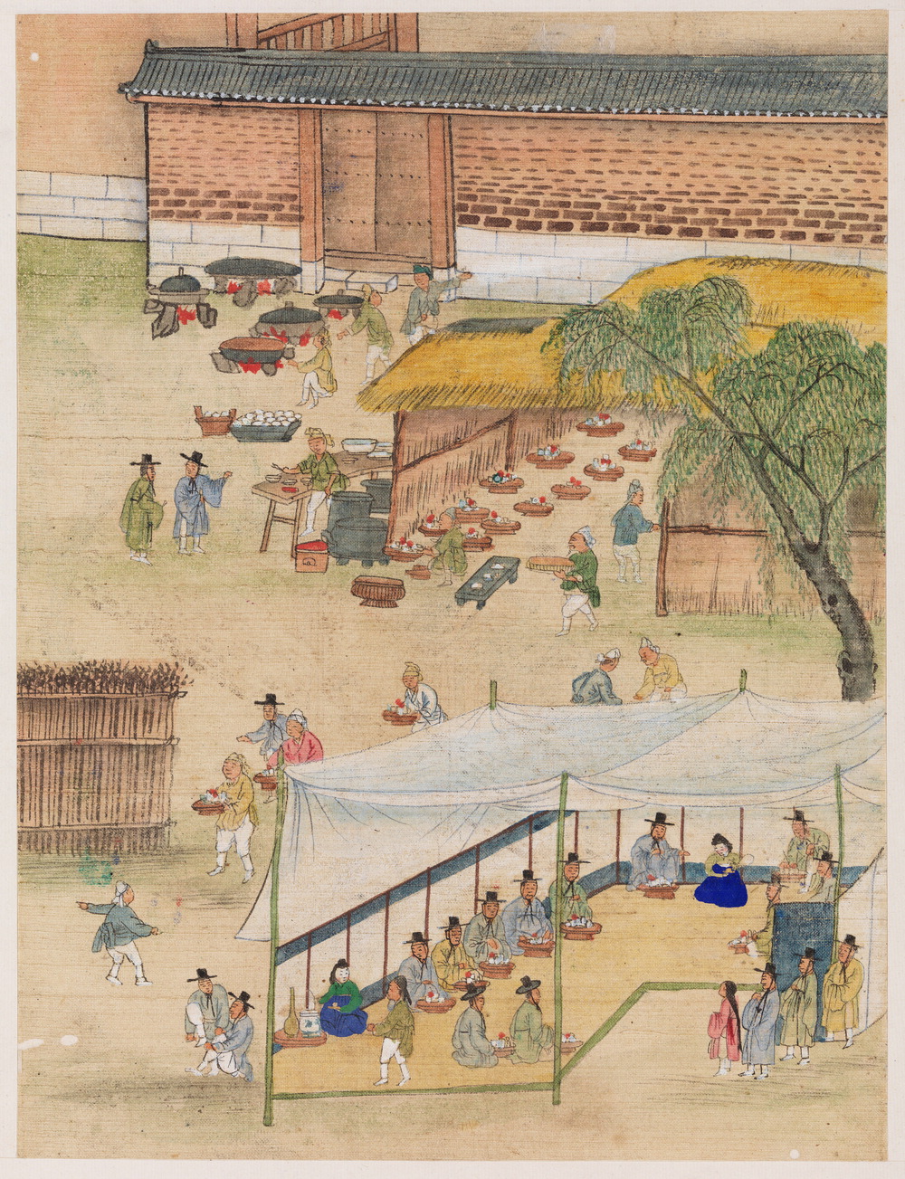 현대인들은 하루 세 끼 식사를 하지만 조선 왕실에서는 하루 다섯 끼를 먹었다. 아침 수라는 오전 10시,저녁 수라는 오후 5시며 간단한 요기 수준의 식사를 이른 아침과 점심,밤에 먹었다. 이러한 기록은 정조가 회갑을 맞은 어머니 혜경궁 홍씨를 모시고 화성 행궁에 행차한 일을 날짜별로 기록한 의궤 '원행을묘정리의궤'에 자세히 설명돼 있다. 이 의궤의 '찬품'에는 8일간 정조와 혜경궁이 먹은 음식과 재료,사용된 기명이 상세히 기록돼 있다. 1795년 2월 11일과 14일은 특별한 이동이 없던 날로,평상시처럼 5번의 수라상이 올랐다.