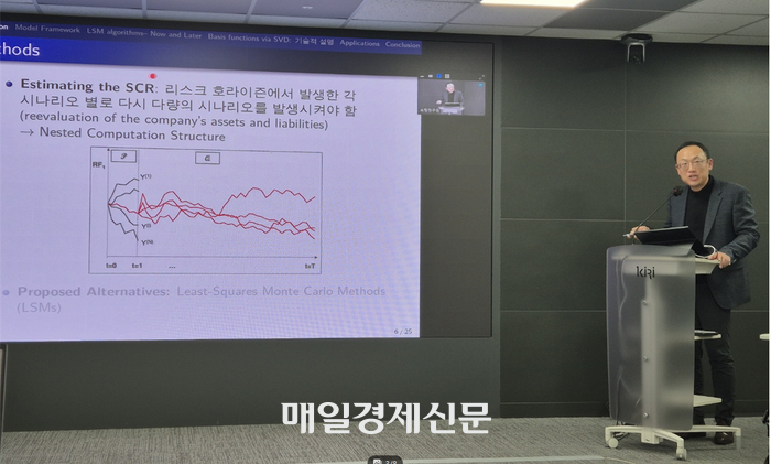 22일 보험연구원은 ‘보험회사 내부모형 개발 및 적용 방안’ 산학 세미나를 열고 내부모형 운영안 등을 논의하는 자리를 마련했다. [사진 출처 = 최종일 기자] 또 지난 2003년부터 내부모형을 마련해 자체적으로 운영하고 있다고 설명했다. 기후리스크 관리 유도 등의 관리지침을 반영해 모델 개선을 지속하고 있다고 했다.