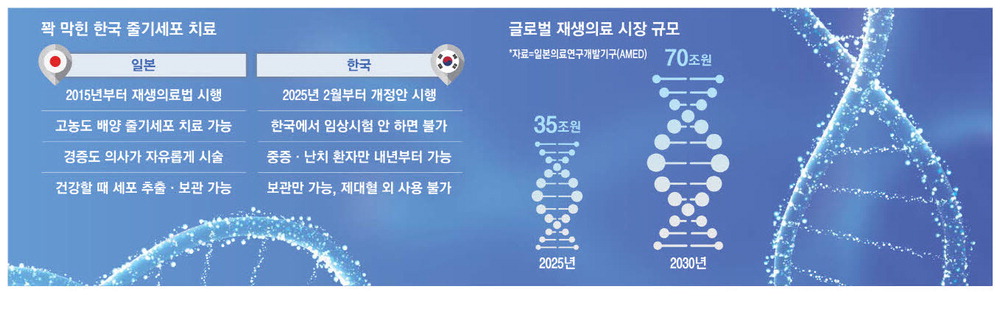 국내에서는 금지된 면역세포 치료를 받기 위해 '일본 원정'을 떠나는 사람들이 급증하고 있다. 최소 수백만 원이 들지만 한국에서는 치료받을 길이 없어 일본으로 갈 수밖에 없는 처지다. 일본·미국·유럽 등 전 세계가 줄기세포를 활용한 재생의료산업을 키우고 있는데,한국만 규제에 발이 묶여 있다는 지적이 나온다.