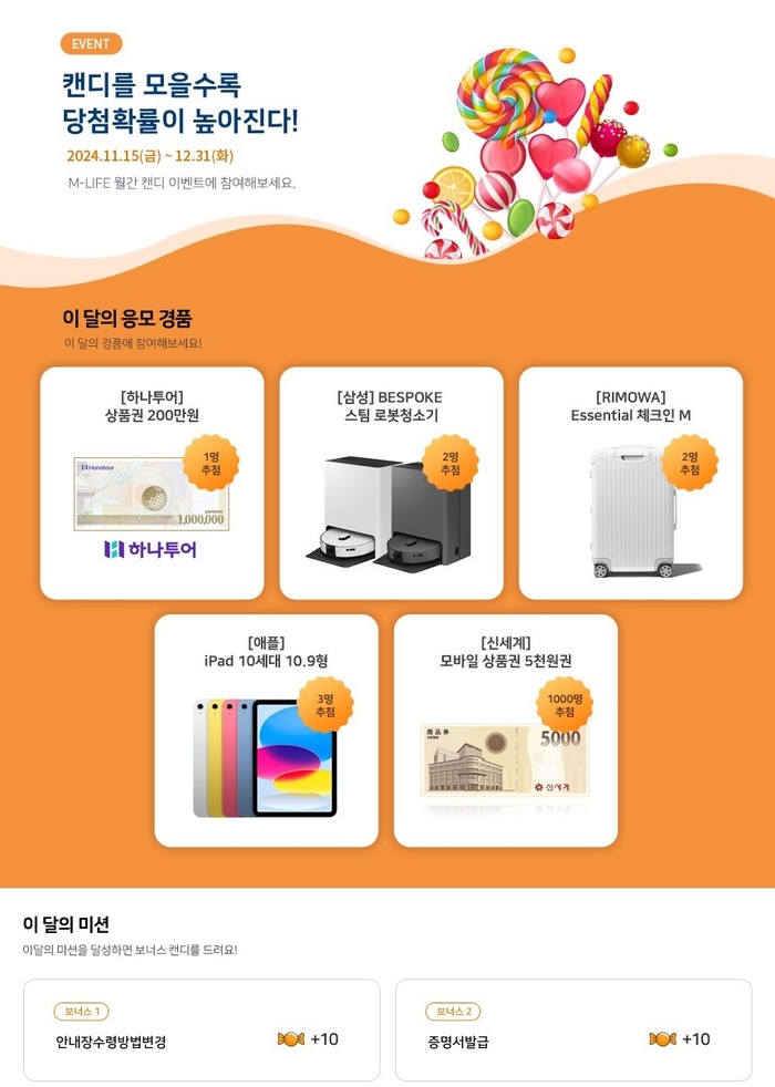 미래에셋생명, 원하는 상품에 응모하는 ‘M-LIFE 캔디 이벤트’ 오픈