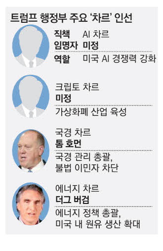 트럼프 2기 행정부는 이미 국경 차르로 톰 호먼 전 이민세관단속국(ICE) 국장 직무대행,에너지 차르로 더그 버검 노스다코타주지사를 임명했다.