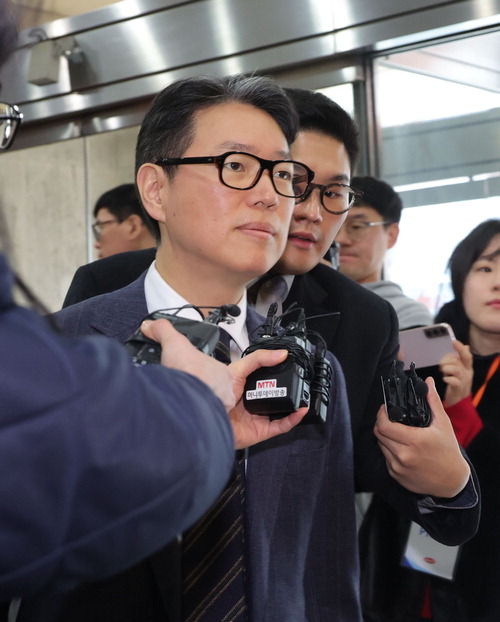 임종훈 한미사이언스 대표가 28일 서울 잠실 교통회관에서 열린 한미사이언스 임시 주주총회에 참석하고 있다. 이승환기자