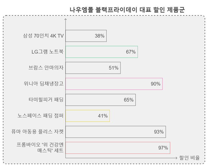 블랙프라이데이에 파격 할인을 선언한 나우엠몰의 대표 상품군 ⓒ나우엠몰 ▶나우엠몰의 블프 파격할인을 즐기시려면 여기를 클릭