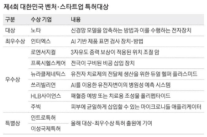 ◆ 벤처∙스타트업 특허 대상 ◆