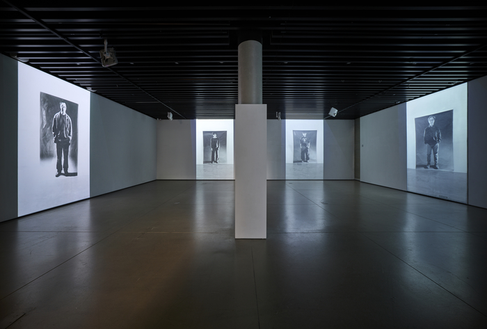 마지막 1층 전시실은 모든 벽면을 영상 설치 작품인 ‘자화상’ 연작으로 채웠다. 자신의 실물 크기 전신 사진을 포스터처럼 벽면에 살짝 붙여 놓고,사진이 벽면에서 떨어지면 다시 그 포스터를 주워 벽면에 붙이는 퍼포먼스를 반복하는 영상이다. 영상 속 포스터가 떨어지면서 나는 소리는 마치 천둥소리처럼 울려 퍼지며 관객을 압도한다. 특히 작가가 30대였던 1999년 사비나미술관에서 선보인 ‘자화상’(1999)과 세월이 흘러 중년이 된 지금,작가가 같은 방식으로 제작한 ‘자화상’(2024)이 서로 마주보도록 전시했다. 김 작가는 “쓰러지고 다시 일어서길 반복하는 게 우리 삶이 아닐까 생각했다”며 “과거엔 나이가 들면 단단해질 줄 알았는데 60대가 된 지금도 쓰러지기는 마찬가지란 의미를 담았다”고 설명했다.