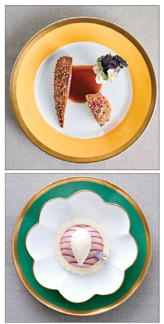 '노벨 디저트'로 불리는 역사적인 요리 역시 감탄을 자아냈다. 달게 절인 사과를 1㎜ 두께,1㎝ 부채꼴 모양으로 썰어 겹친 모양이었는데 보기만 해도 귀한 예술품 같아 포크를 대기 망설여질 지경이었다.