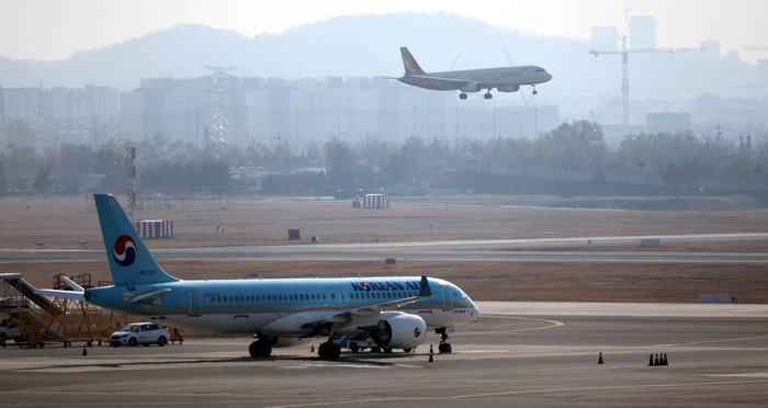 대한항공과 아시아나 항공 항공기. [이충우 기자] 대한항공이 아시아나항공 지분 인수 작업을 끝내면서 4년여간 끌어온 양사의 기업 결합 절차가 완료됐다. 이에 따라 1988년 아시아나항공이 설립된 이래 36년간 이어진 한국의 양대 국적 항공사 시대는 막을 내리게 됐다.